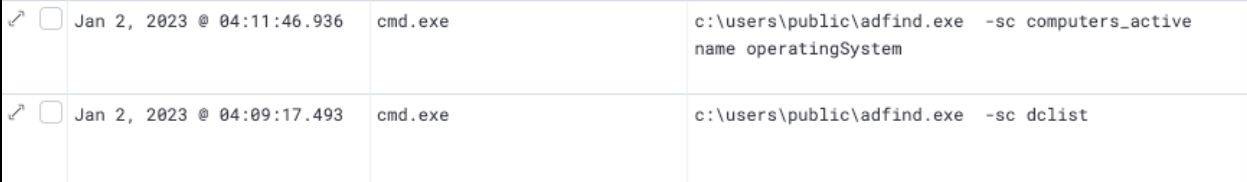 The binary is quickly identifiable based on its hash (114b37df703d46a44de0bc96afab8b8590e59a3c389558dd531298e5dd275acb). During execution, we recognized the use of AdFind-specific command line flags and parameters: