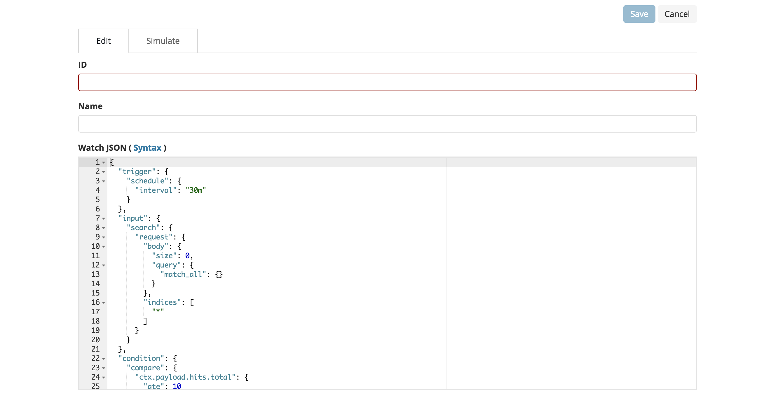 editAdvanced watches are for people who are more familiar with Elasticsearch query syntax and the watcher framework overall. The creation UI is more closely aligned with using the REST apis directly. For more information, see Query DSL.
