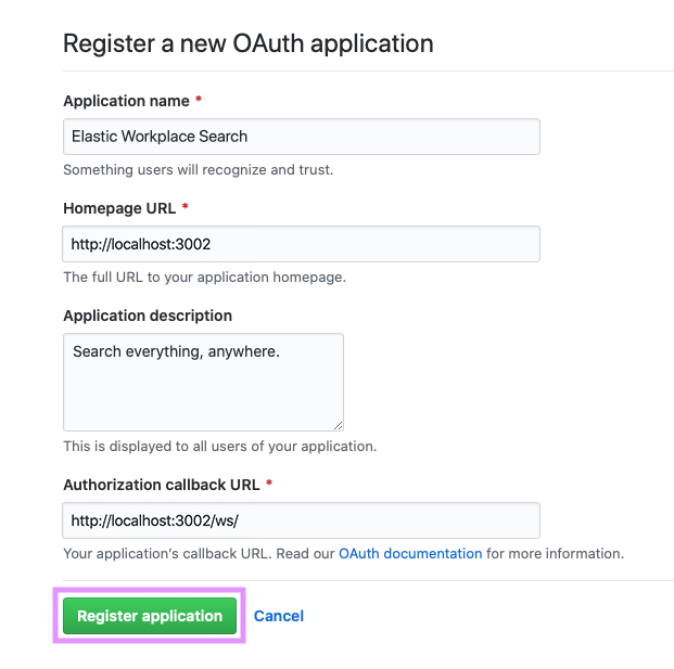 • Application Name: A name to help you identify the application. It’s best to make it explicit: Workplace Search, or something like that.