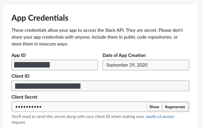 Make sure that you create the app through a trusted and stable Slack account. We recommend using a team-owned account.