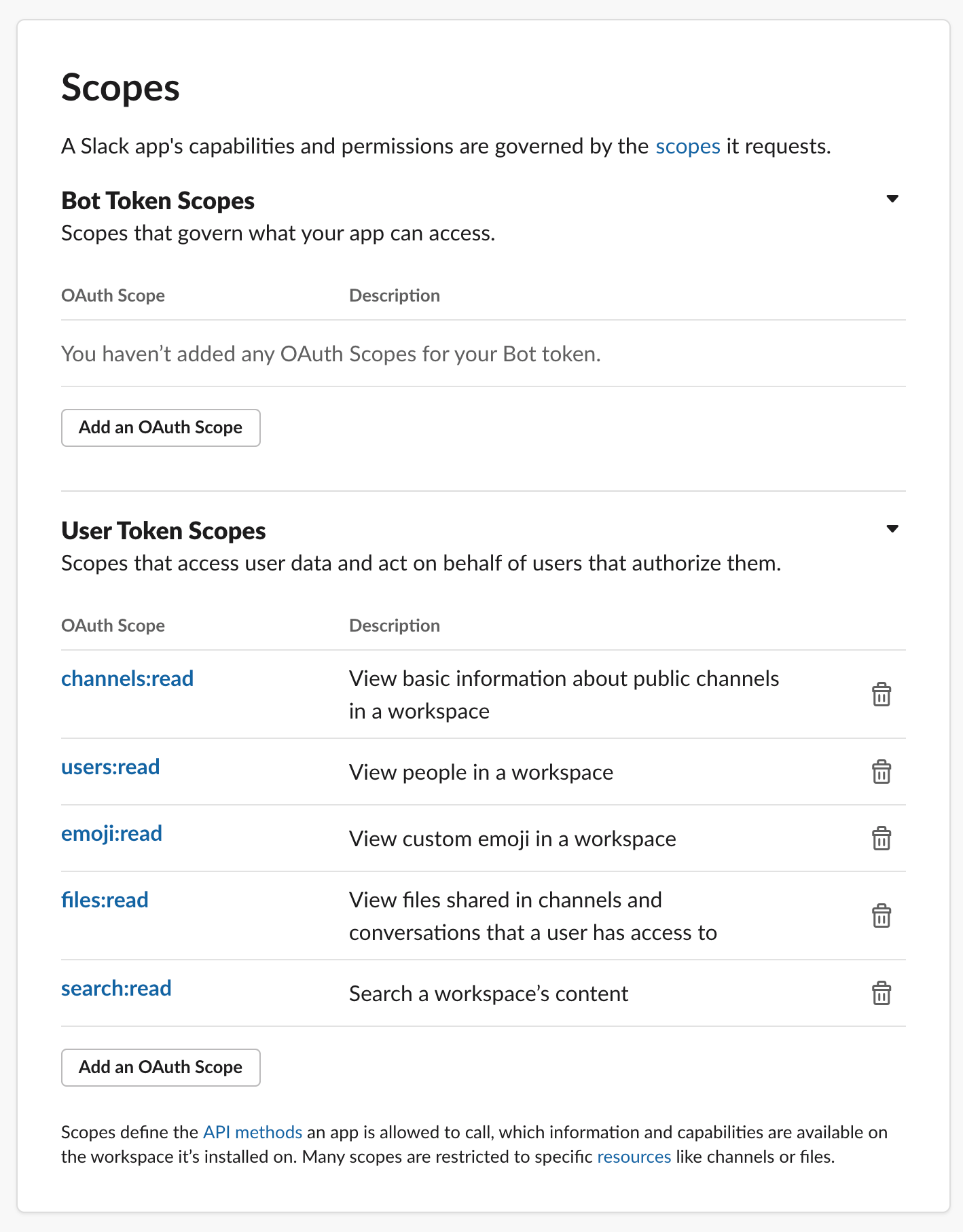 Step 5. Next, we must define scope. You will need to add five under User Token Scopes.