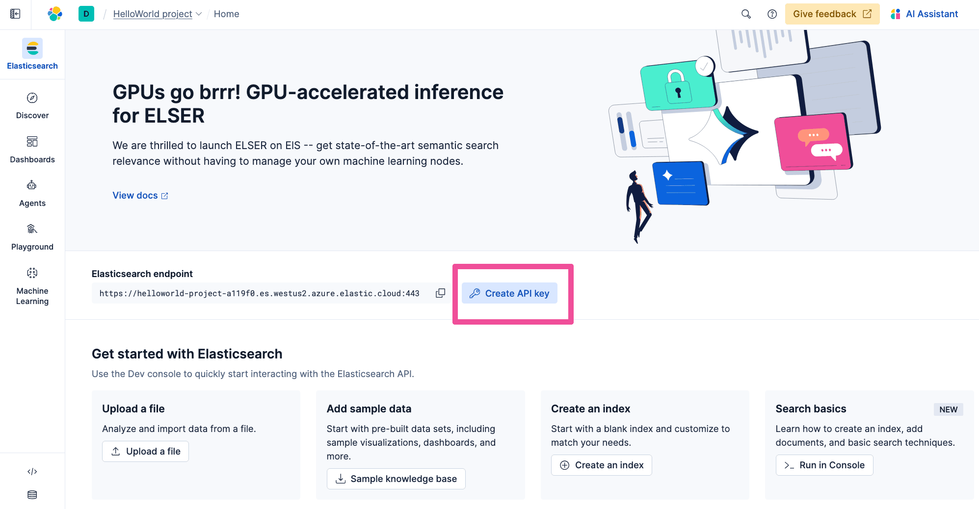 The next step on this walkthrough journey is to create an agent that can utilize the data stored in Elastic.