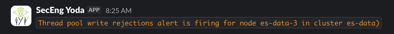 The opportunity to test AutoOps presented itself when we received a thread pool write rejections alert in our alerting Slack channel: