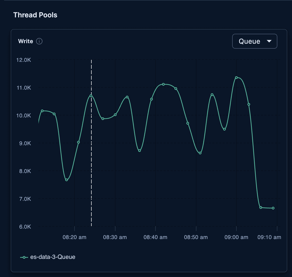 After executing the reroute, the write thread pool for es-data-3 decreased immediately:
