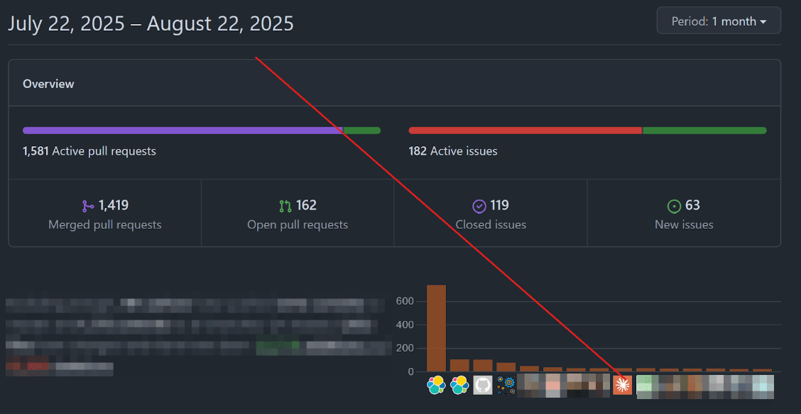 During its first month of operation, and limited to only 45% of dependencies, Self Healing PRs became one of our Cloud GitHub repository’s top contributors. The plugin successfully fixed a total of 24 initially broken PRs, with the Claude author making 22 commits between July 22nd and August 22nd.