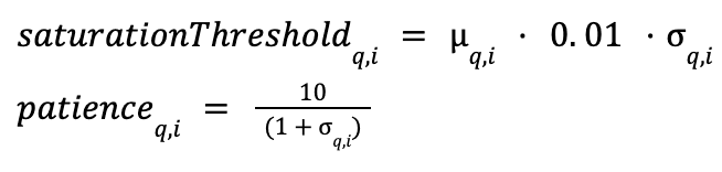 In practice, in Elasticsearch this is implemented using static thresholds. One threshold refers to the saturation threshold: that is, the ratio of saturation that we consider suboptimal. The other threshold refers to the number of consecutive graph nodes that we allow to be visited while still having a suboptimal queue saturation: that is, the patience threshold.