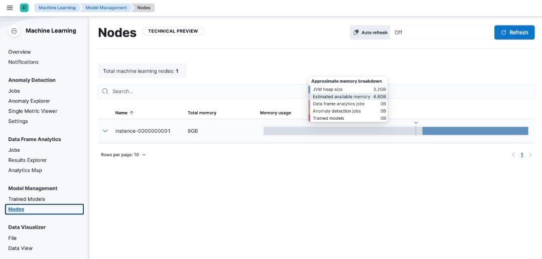 • One ML (Machine learning) node with 4GB of memory (The size of this node is important as the NLP model you will import into Elasticsearch consumes ~1.5GB of memory.)