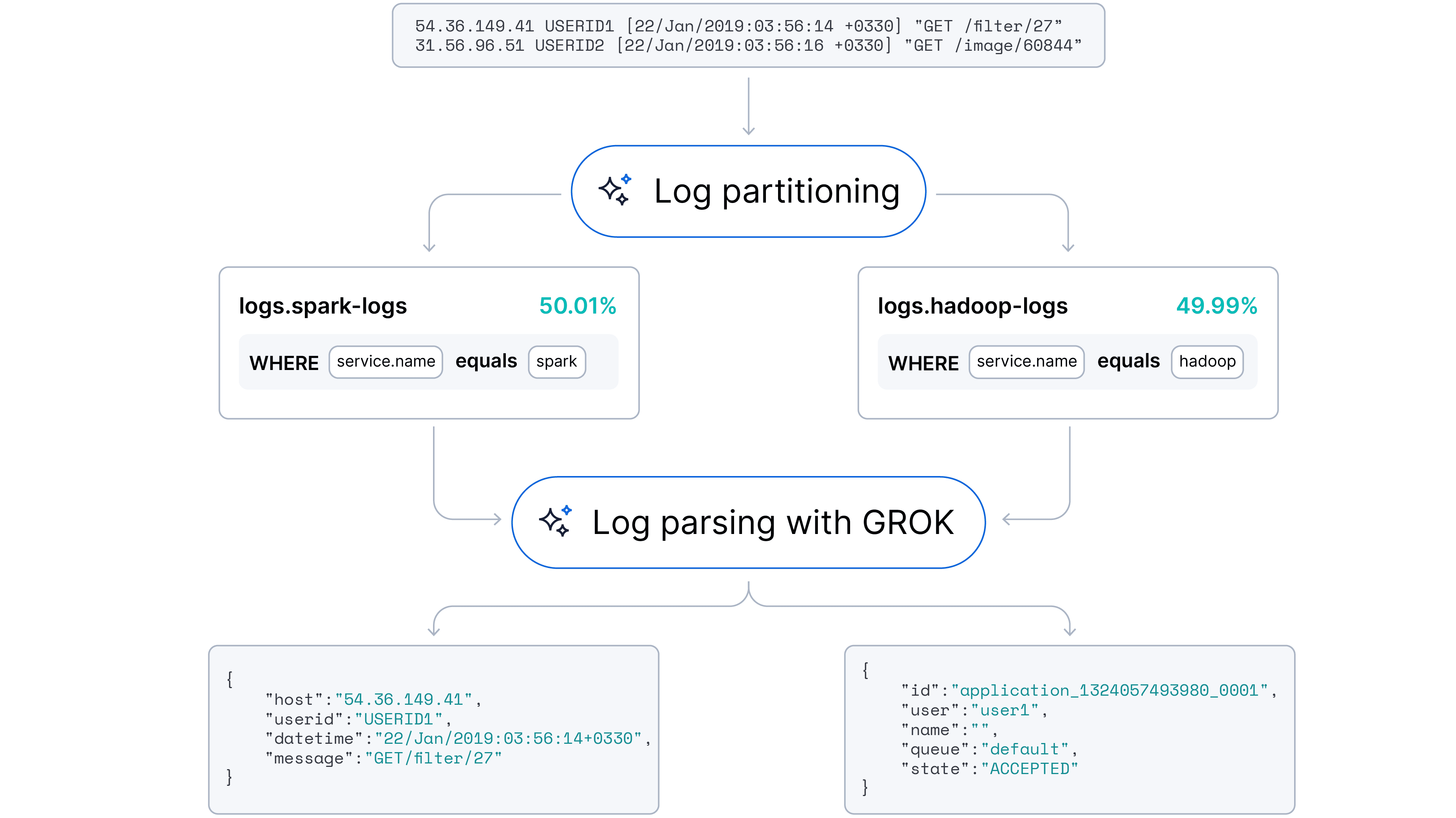 In modern observability stacks, ingesting unstructured logs from diverse data providers into platforms like Elasticsearch remains a challenge. Reliance on manually crafted parsing rules creates brittle pipelines, where even minor upstream code updates lead to parsing failures and unindexed data. This fragility is compounded by the scalability challenge: in dynamic microservices environments, the continuous addition of new services turns manual rule maintenance into an operational nightmare.