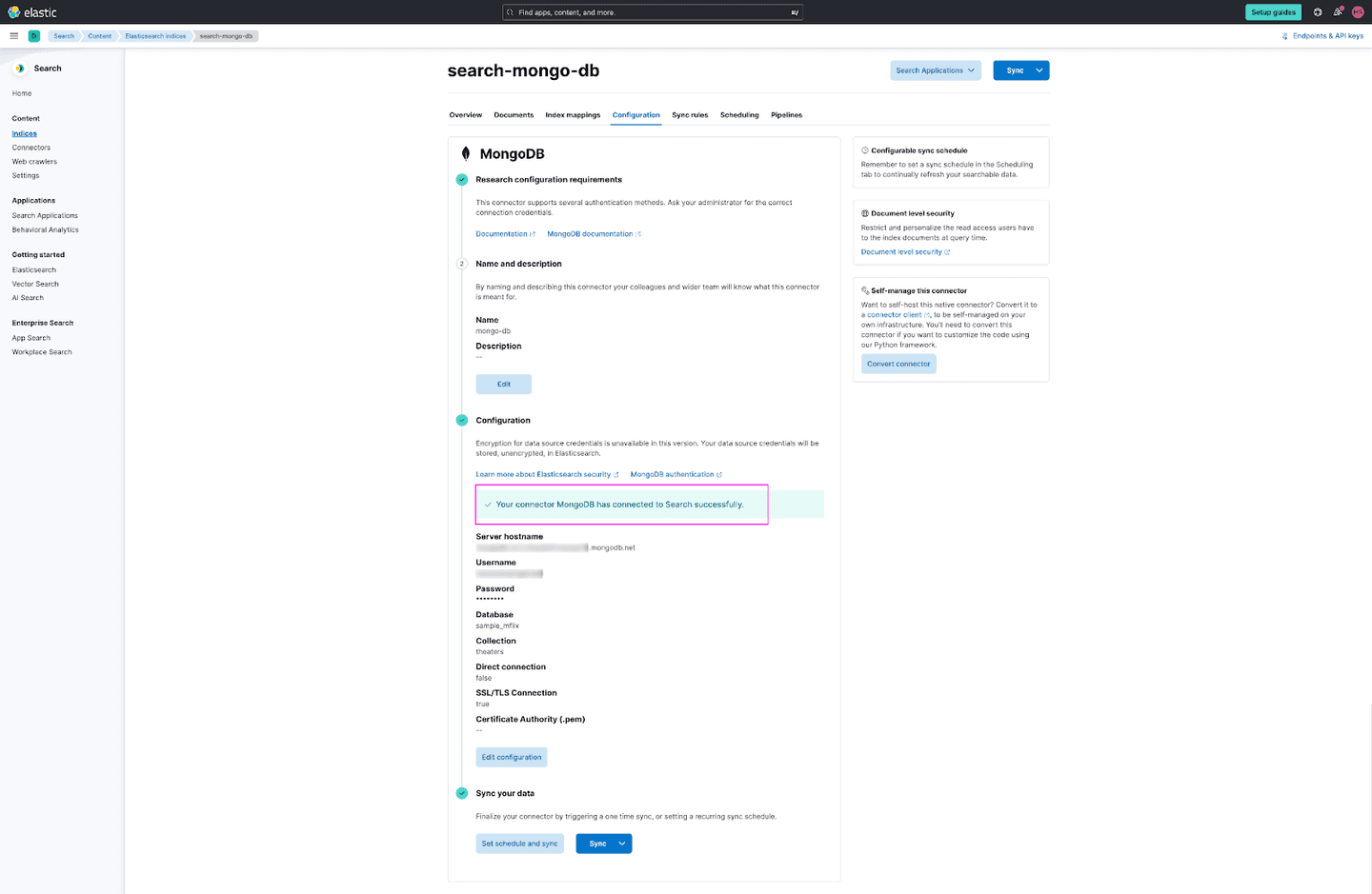 Below is a step-by-step guide on how to ingest and sync data from the MongoDB database into Elasticsearch using the Elastic MongoDB connector.