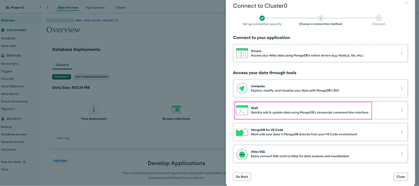 For ingesting metrics from the MongoDB Atlas cluster, we will use the Elastic MongoDB integration. At a high level use a fleet server (available by default) in Elastic Cloud and install an agent on a host (access required to MongoDB cluster, add host IP in Atlas Network access). MongoDB integration is configured and deployed on the agent which runs Metrics command on MongoDB server to ingest data into Elasticsearch.