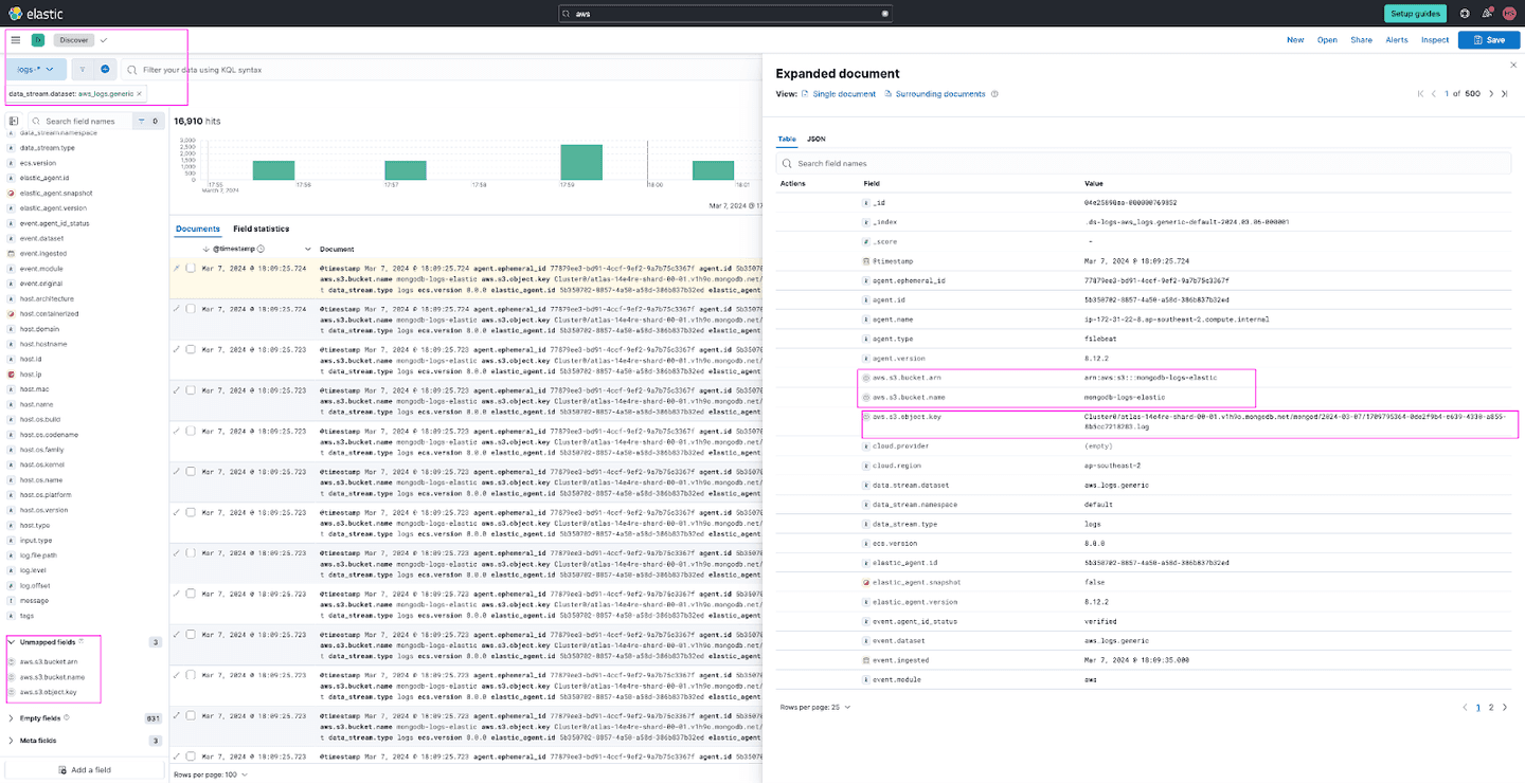 Check fields : aws.s3.bucket.arn OR aws.s3.bucket.name OR log.file.path to confirm logs are coming from configured s3 bucket only.